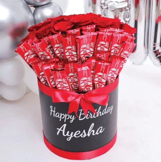 Have a look at our delicious Chocolate Flower Hat Box. Beautifully decorated with chocolate and fresh flowers which is sure to make a wonderful gift for your special someone. A perfect gift for her.