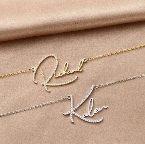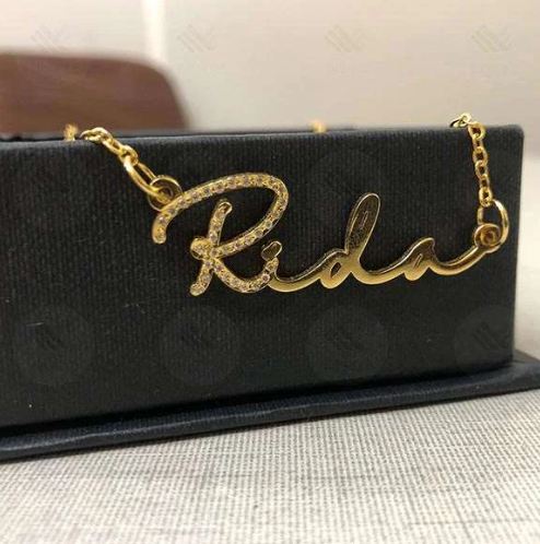 Women and jewellery go hand in hand. Get your special woman this beautiful signature style name necklace with stones with premium quality. Make her feel special on valentine’s or other occasions..